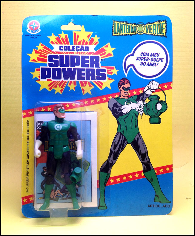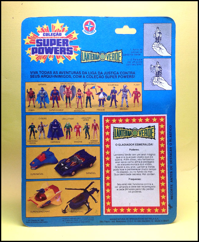 Estrela released its Super Powers, or "Colecao Super Powers" as the packaging illustrates, action figure line for the Brazilian market. The Estrela line, while not as robust as Kenner's, consisted of seventeen figures upon completion of the line. While Estrela released all twelve first series characters, only two from the second series (Green Arrow and Darkseid) and three from the third series (Cyborg, Plastic Man, and Shazam) were ultimately produced. Estrela mimicked Kenner in offering free in-pack mini-comics with each carded figure, but deviated substantially through mini-comic inclusion with the three third series characters.