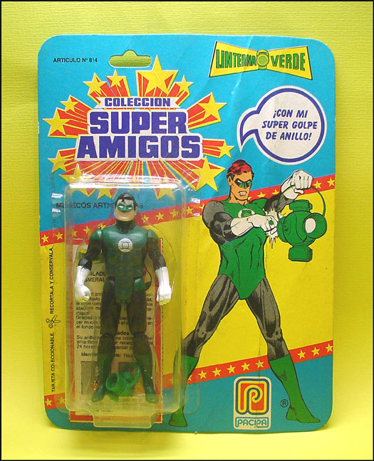 and other international companies' packaging, Pacipa's Green Lantern figure exhibits