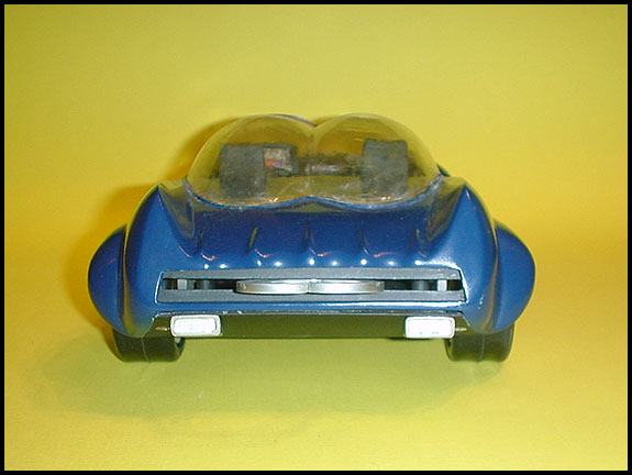 These two photo show close-up views of the model from the front and rear. The slot, where the capture claw fits into, shows up nicely in the righthand photo.
