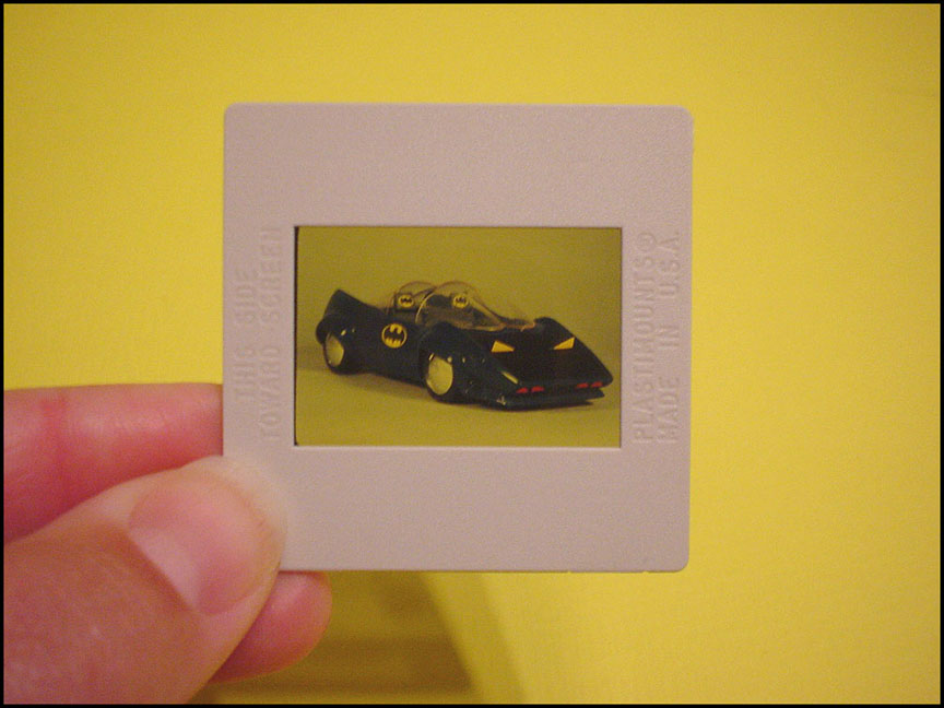 Fast forward to July of 2007, when I was fortunate to obtain an original 2-dmensional, hand-drawn, and hand-colored design rendering from an ex-Kenner designer who worked on a number of toys from the line, including the Batmobile. Along with the artwork I obtained a slide showing a three-dimensional model that was built by Kenner's model shop using the previously mentioned design rendering as a guide. Yes, ironically enough the Batmobile model shown in that slide was the very same model I missed two years ago! Hind-sight...20/20...once again! I thought more and more about the design model after obtaining the artwork and slide, but was resigned to the fact that the model was long gone. A few months later, I received a phone call from my same close friend telling me that an unrelated visit to his contact revealed that the Batmobile hadn't been sold afterall and he secured it for me! In the end good luck and friendship triumphed and I now happily own several incredible pieces of the Super Powers Batmobile's history.