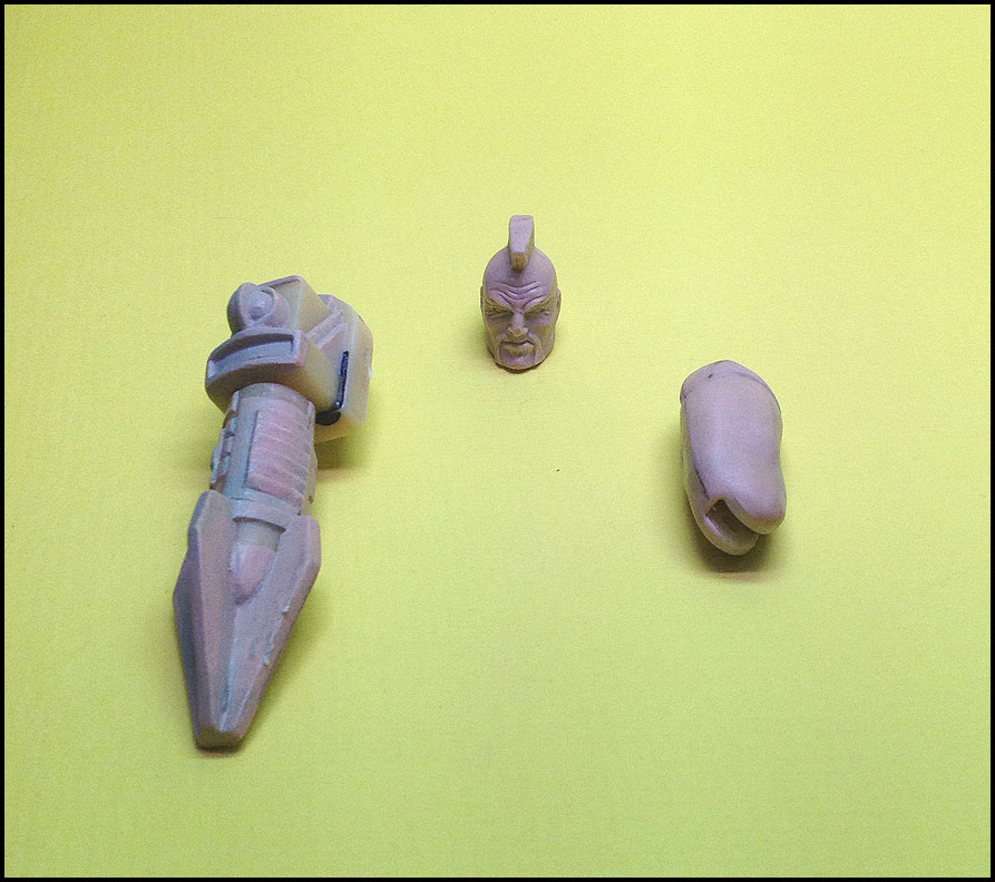 Original wax sculpting are considered by many collectors as the pinnacle of three-dimensional prototype stages to own. Aside from rough sculpts, occasionally accomplished in clay, a sculpting is considered the true parent that gives rise to every action figure for the particular character. The sculpt serves as the initial three-dimensional prototype stage. The photo above shows several components of the Tyr action figure sculpting.