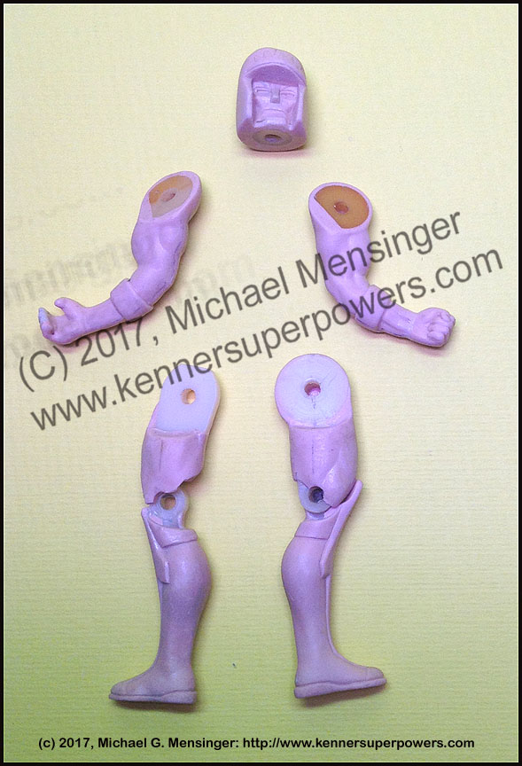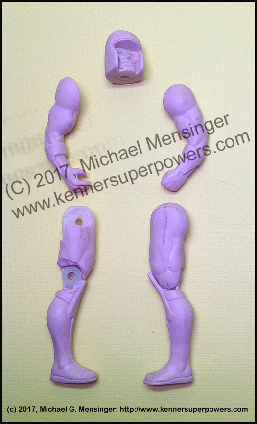 The photos above shows what are believed to be the sole surviving components of the Cyclotron action figure sculpting. The three missing components include the two-piece torso (upper half and lower half)and the face mask.