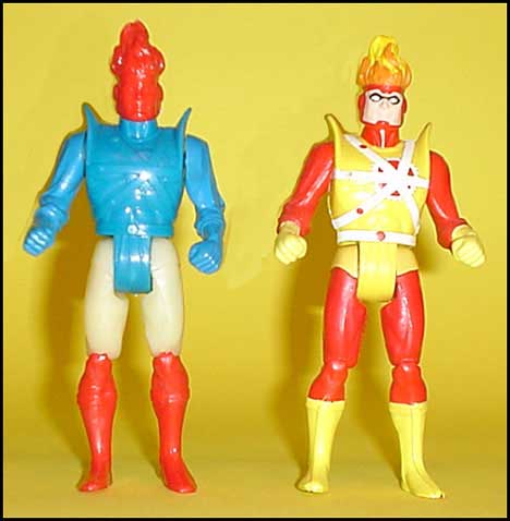 Showcased here is an impressive first shot of Firestorm cast in non-production colors. First shots, often referred to as "test shots" or "engineering pilots" are utilized to ensure a proper quality product is generated from the steel production molds. Since copyright markings and dates are added to the production molds late in the process, first shots typically lack them. Early test shots may be found in non-production colored plastic, like the one seen here, while later test shots may mimic the final product both in plastic color and paint scheme. The plastic color on early first shots is in consequential as they serve solely to ensure the prodcution mold functions adequately.