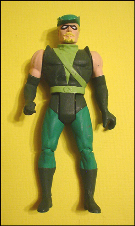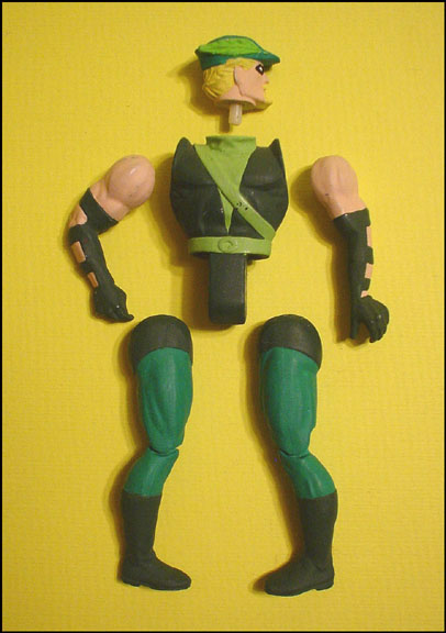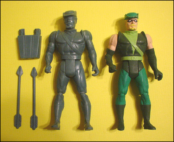 Over the years I've been fortunate to assemble various prototype stages of the Green Arrow action figure. The painted hardcopy is shown above with another stage, the unpainted hardcopy. Interestingly, while the unpainted hardcopy is cast in a green urethane, commonly referred to as dynacast, the painted hardcopy is cast in a grey urethane like the material found on the Orion unpainted hardcopy seen here.