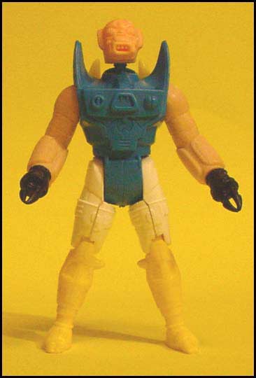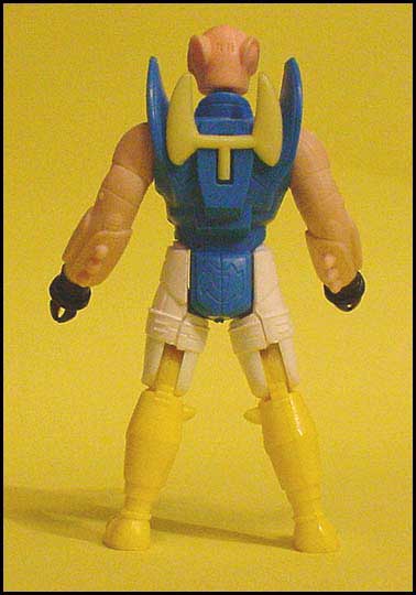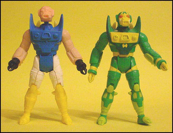 Showcased here is an unpainted Mantis first shot. Mantis is cast in nonproduction colors lending it vast eye appeal. First shots, sometimes referred to as test shots, are used to test the steel molds prior to mass production. The color of the injection molded plastic was irrelevant since the figure served only test purposes. Typically non-production color first shots are more desireable to collectors. Although it is not apparent from the photos, this first shot is completely non-sonic welded allowing the figure to be taken apart. Not only do the limbs detach from the torso, but both the torso and thighs seperate into two halves since they are not sonic welded like a production figure.