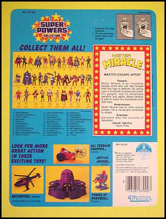 Shown here is a proof card for the 3rd series Mr. Miracle packaging. Proof cards are essentially used as packaging printing tests. Notice the punch is much narrower on the proof card compared to that of the production packaging. The proof's punch area is more similar to that used on Star Wars packaging.