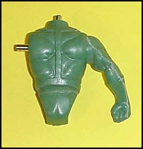 Above you can see the figure in its disassembled state. Kenner utilized metal dowels, like the ones present on this hardcopy, to attach the limbs and head to the torso. Unfortunately Red Tornado is far from complete, missing an arm, head, and legs. Still, it gives an interesting insight into the production process of the figure and a few pieces are better than none.