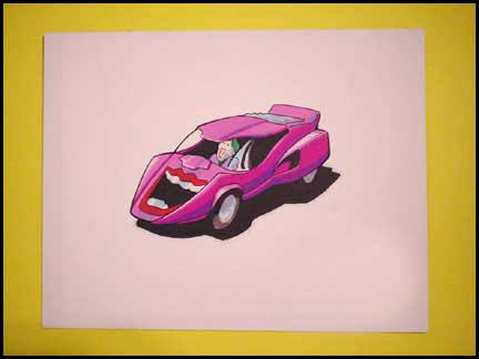 Here we see a piece of conceptual artwork for the unproduced Pre-school super powers line. This line would have obviously been aimed for the younger superhero fans had it made its way off paper. This jokermobile artwork is hand done and the detail is very nice. It is mounted on presentation board. The thought of a super powers jokermobile sends shivers down my spine. It certainly would have been an incredible toy. Unfortunately, I have seen no evidence to suggest the vehicle made it to the prototype stage.