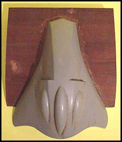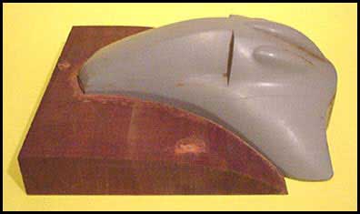 Above we see a final shot of the wooden ship. Patterns often exhibited detail added on with bondo. However, the Supermobile was a fairly sleek, non-detailed ship so this was not necessary. A piece like the front battering ram may have had extra detail added on in this manner.